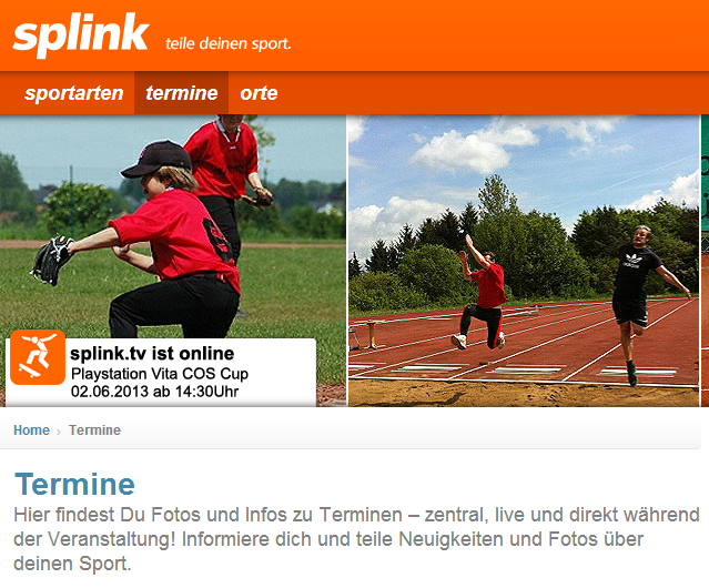 Du kennst die splink-App noch nicht? Dann schau doch mal rein unter splink.de/sportabzeichen. Die splink-App begleitet und unterstützt dich auf deinem Weg zum Deutschen Sportabzeichen. Du kannst dort auf einen Blick die aktuellen Anforderungen 2013 für deine Altersklasse sehen, Tipps zum Trainieren und Sporttreffs in deiner Nähe finden und für jede Disziplin deine Leistungen dokumentieren und auswerten. Deine erzielten Leistungen kannst du dann bundesweit mit anderen Sportlern vergleichen und sie direkt mit deinen Freunden über Facebook und Twitter teilen.